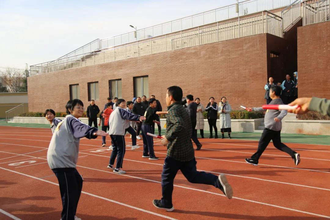 随着裁判员的发令枪声响起,班主任老师像离弦的箭一样冲了出去,薪火相传,将手中的接力棒传递给下一位同学,传递爱国的热血与激情,周围的观众为他们加油呐喊,随着接力棒传递完整个赛道,最后的冲刺者冲向终点,将本活动的气氛推向高潮。