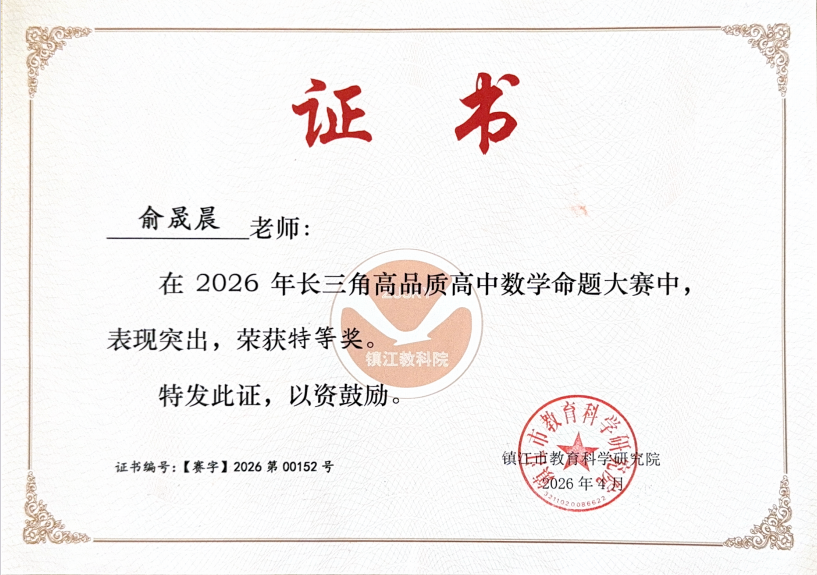 近日,第四届全国名校峰会暨高品质高中数学命题大赛落下帷幕,历城二中教师俞晟晨凭借融合导数、圆锥曲线与不等式交汇的命题从全国48所名校的68名选手中脱颖而出荣获特等奖。