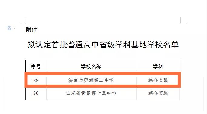 近日,山东省教育厅公布首批普通高中省级学科基地名单,历城二中综合实践学科顺利入选。近年来,历城二中基于国家对人才培养的需要,结合学校的办学理念、学生发展需求和学校科技创新传统优势,构建了综合实践活动课程目标,重点指向学生创新素养的培养,培养面向未来,具有创新意识、创新能力、创新品质、创新价值观的科技创新人才。